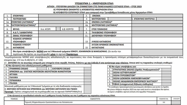 29 Νοεμβρίου 2022 Υποβολή Αίτησης-Δήλωσης Μαθητών και Αποφοίτων για Συμμετοχή στις Πανελλαδικές Εξετάσεις ΕΠΑ.Λ. Έτους 2023