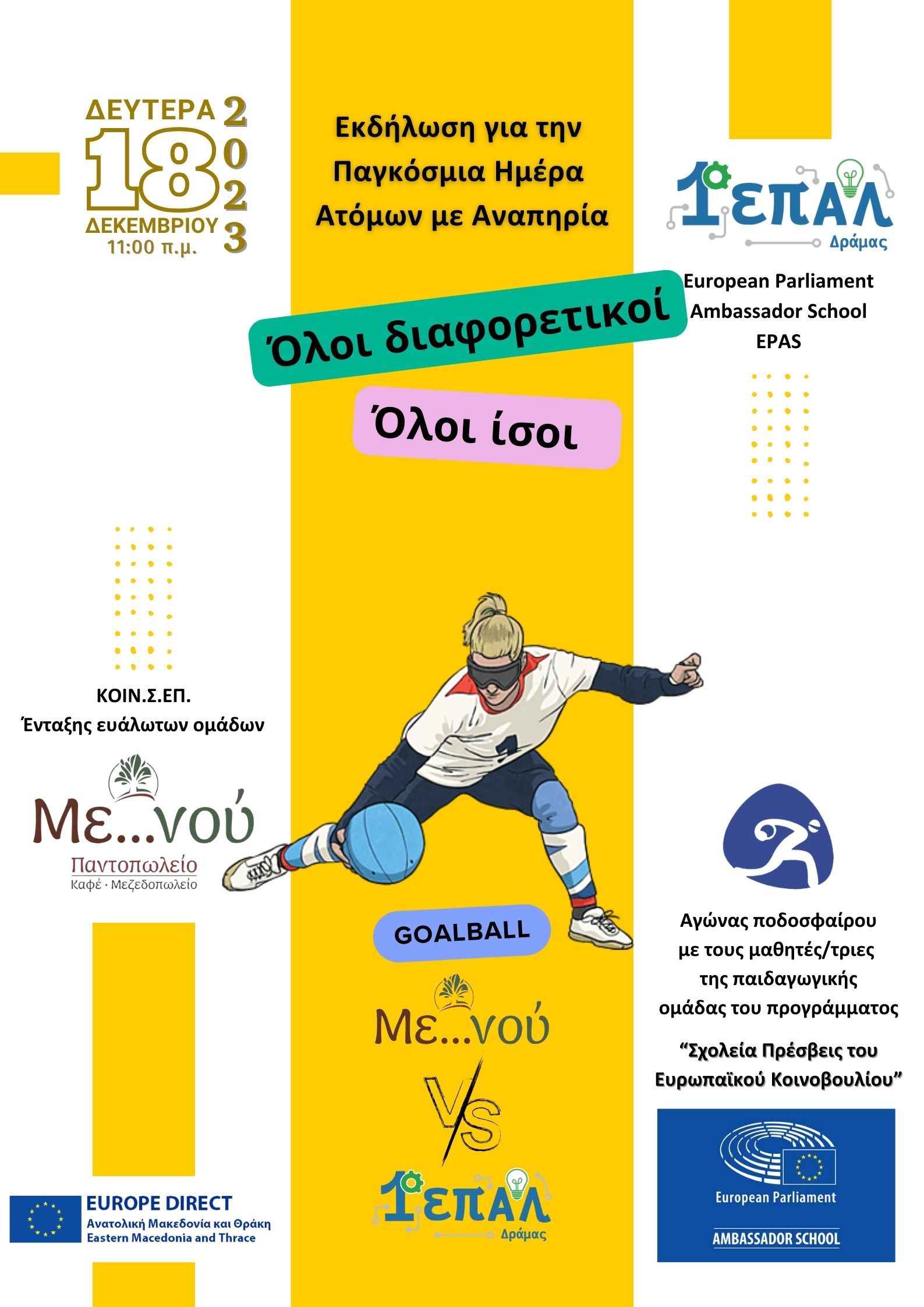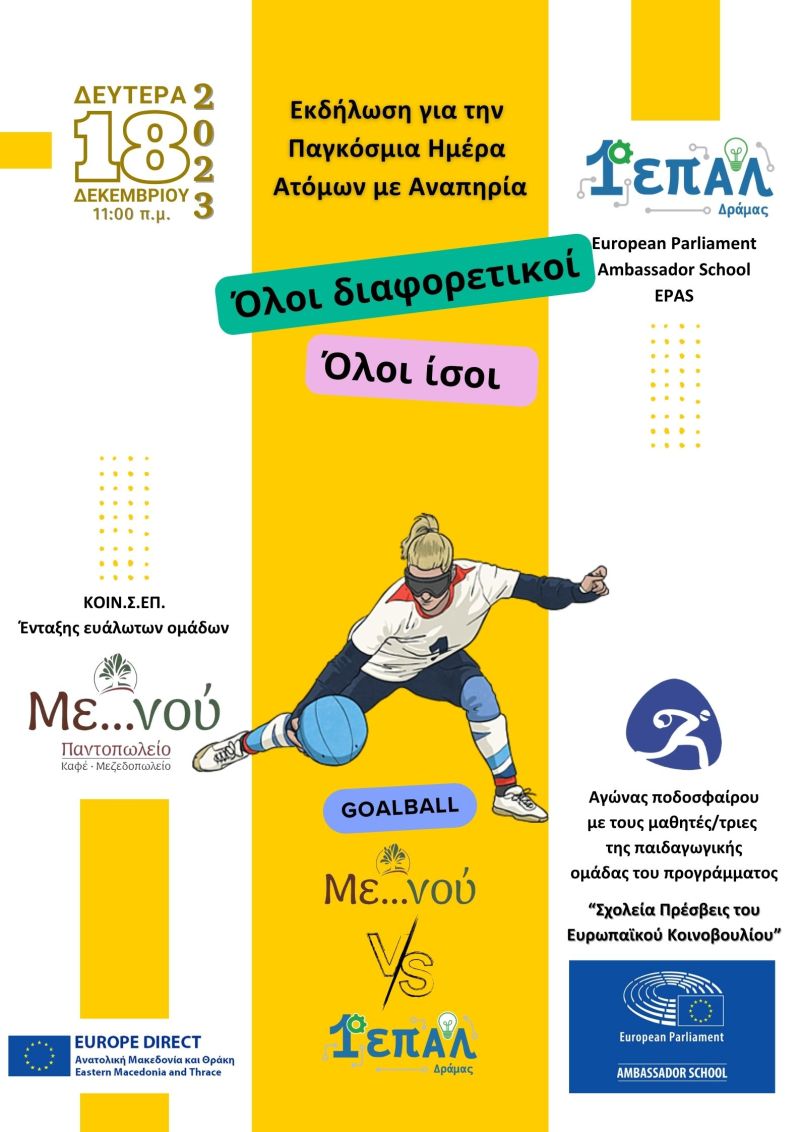 - Φιλικός αγώνας Goalball (στο γυμναστήριο του σχολείου) με την ομάδα του "Μενού”