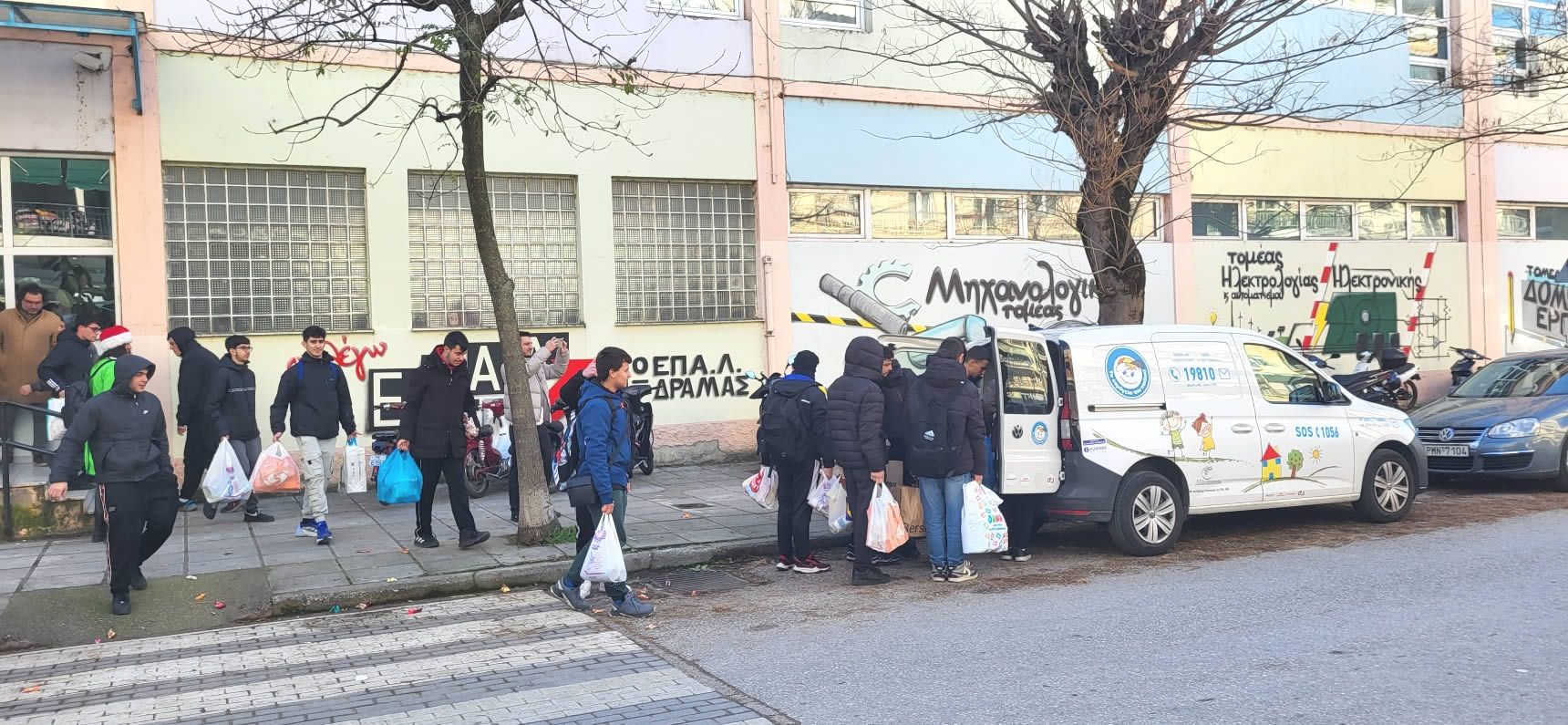 Οι μαθητές, οι γονείς και οι εκπαιδευτικοί του 1ου ΕΠΑ.Λ. Δράμας ενόψει των εορτών των Χριστουγέννων, συγκέντρωσαν τρόφιμα και είδη πρώτης ανάγκης, προκειμένου να συμβάλλουν στην προσπάθεια κάλυψης των αναγκών τόσο των παιδιών που διαμένουν στα σπίτια του Χαμόγελου του Παιδιού, όσο και των παιδιών και οικογενειών που λαμβάνουν υποστηρικτικές υπηρεσίες μέσω των Κέντρων Στήριξης Παιδιού & Οικογένειας λόγω των σοβαρών προβλημάτων διαβίωσης που αντιμετωπίζουν.