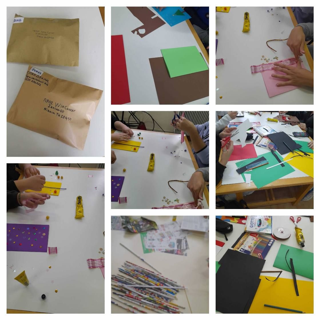 Οι μαθητές στο πλαίσιο του μαθήματος «Ζώνη Δημιουργικών Δραστηριοτή-των» σχεδίασαν και δημιούργησαν χριστουγεννιάτικες κάρτες οι οποίες σε συνεργασία με τον οργανισμό Win Cancer παραδόθηκαν σε ογκολογικά νοσοκομεία της χώρας.