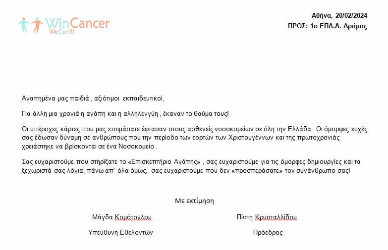Χριστουγεννιάτικες Κάρτες και Win Cancer