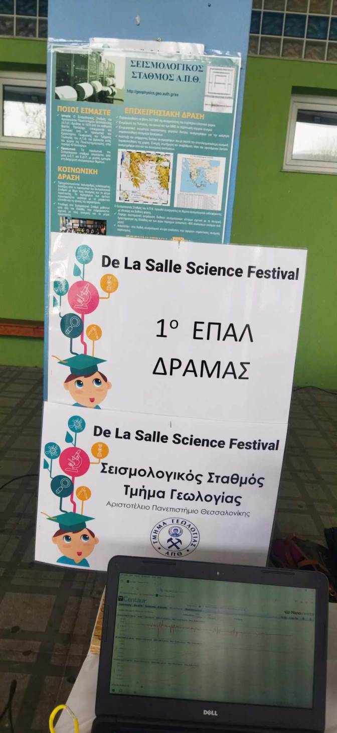Στις εγκαταστάσεις του κολλεγίου ΔΕΛΑΣΑΛ και σε ένα ανοιχτό για τον κόσμο Φεστιβάλ αφιερωμένο στις Επιστήμες και την Τεχνολογία παρουσιάστηκε ο σεισμογράφος του 1ου ΕΠΑ.Λ. Δράμας.