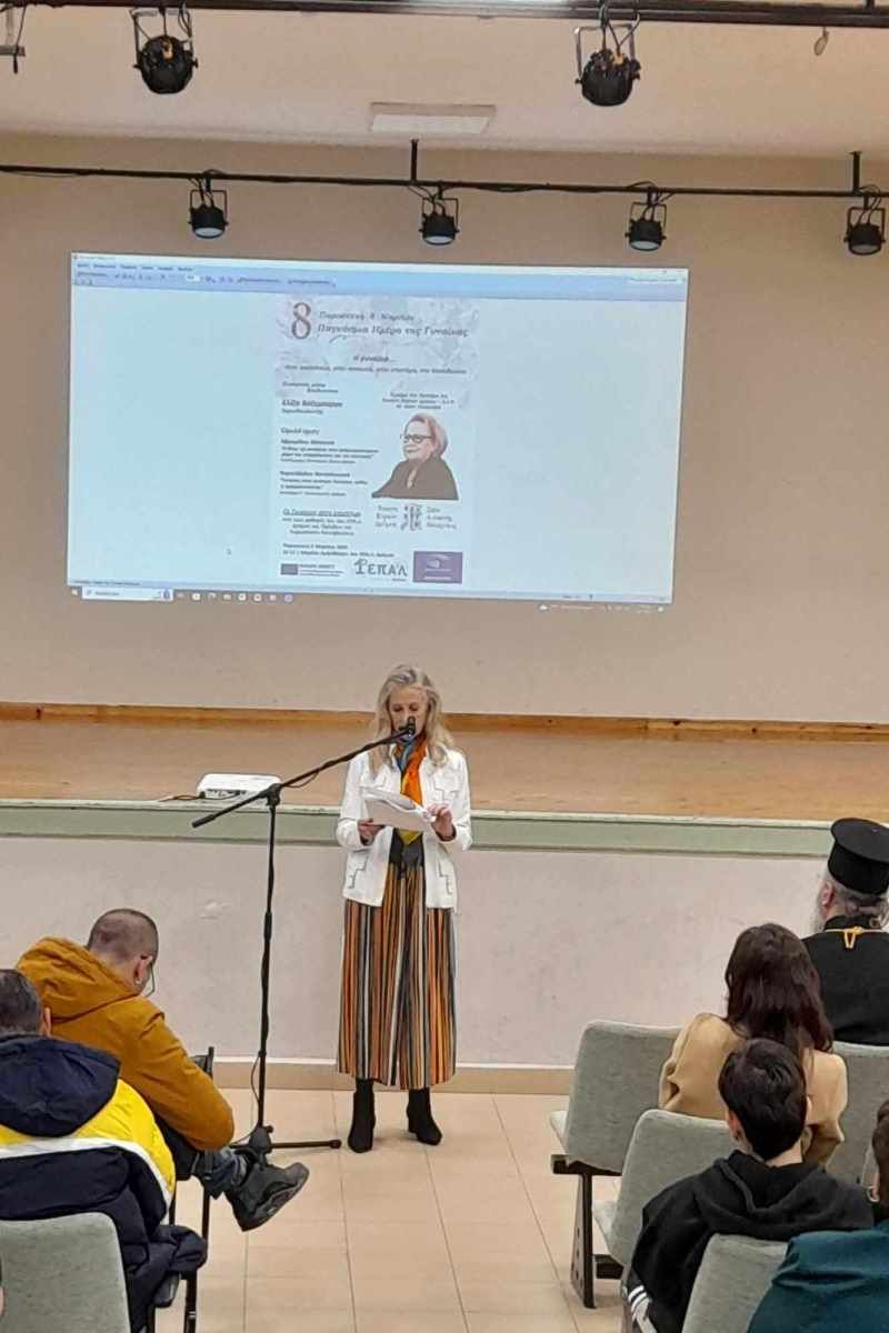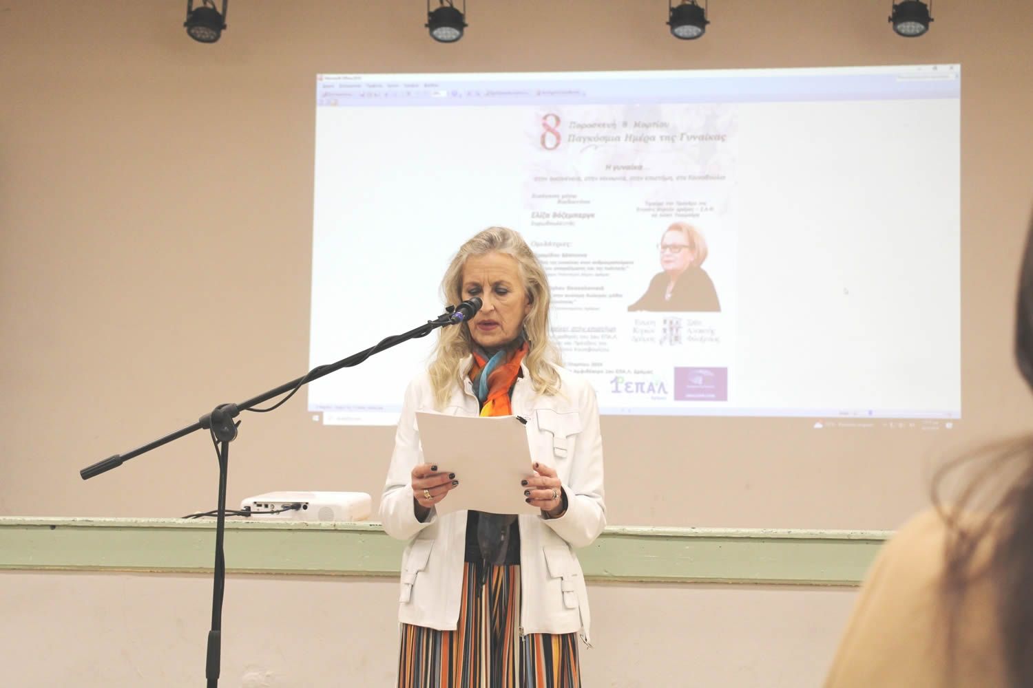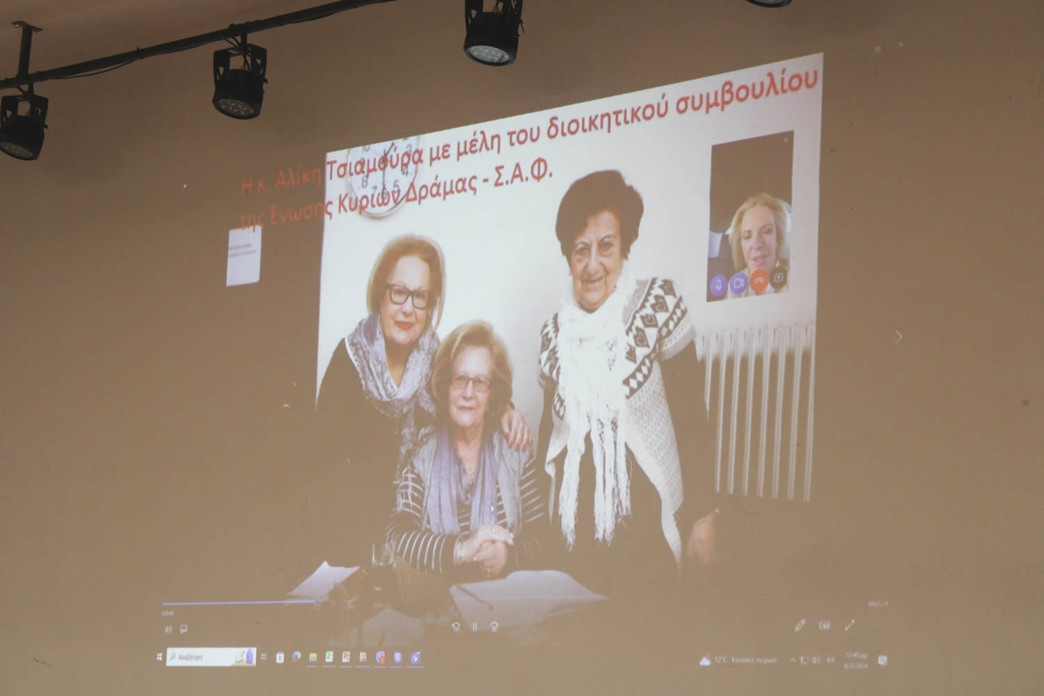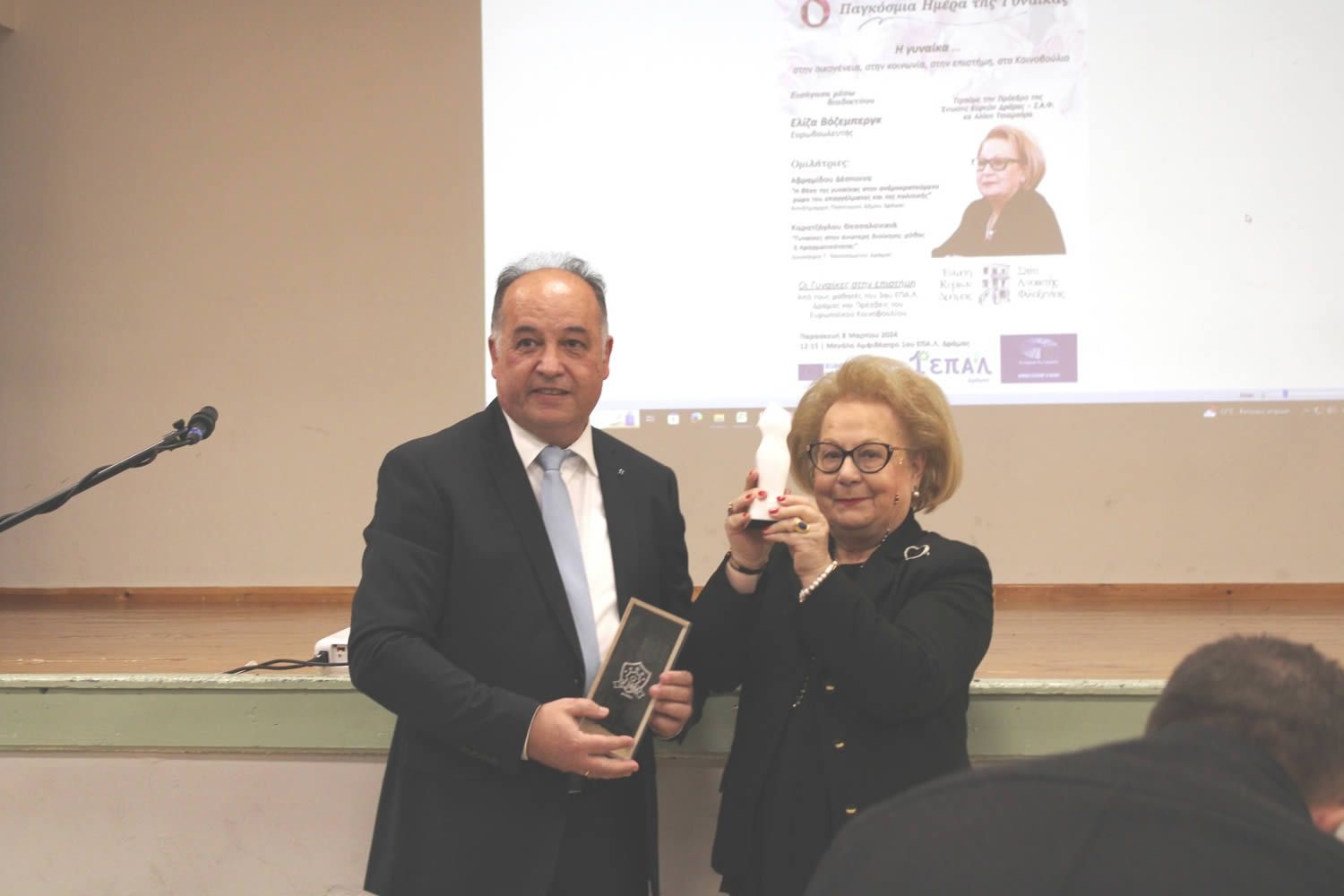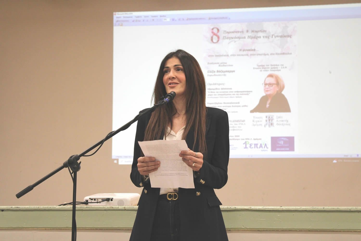 - Αβραμίδου Δέσποινα, Αντιδήμαρχος Πολιτισμού Δήμου Δράμας, για την ομιλία της με θέμα: “Η θέση της γυναίκας στον ανδροκρατούμενο χώρο του επαγγέλματος και της πολιτικής”
