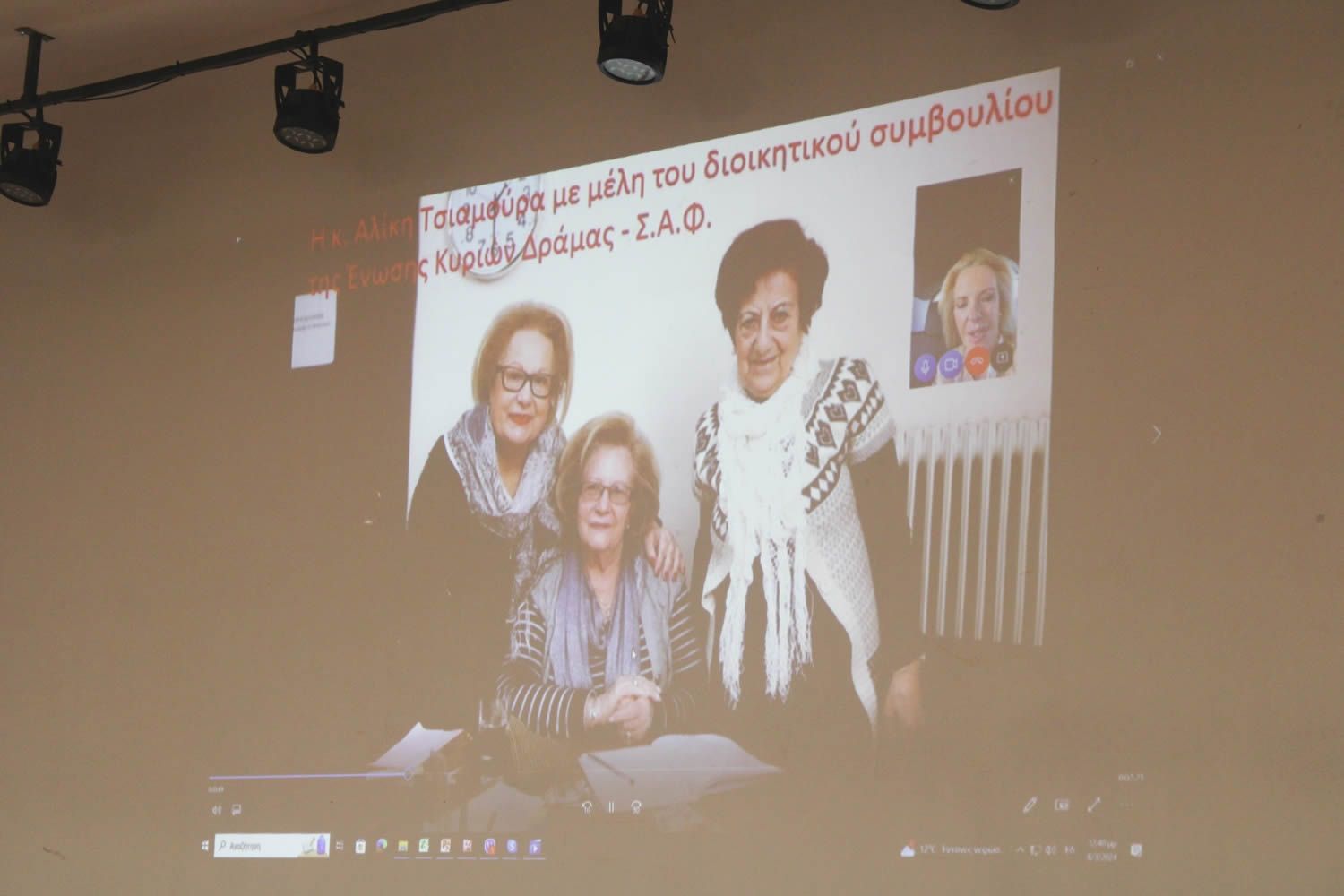 Στην εκδήλωση τιμήσαμε την Πρόεδρο της Ένωσης Κυριών Δράμας – Σ.Α.Φ. κ. Αλίκη Τσιαμούρα για την ανιδιοτελή κι αστείρευτη αγάπη που προσέφερε και συνεχίζει να προσφέρει στον άνθρωπο και την τοπική κοινωνία της Δράμας!