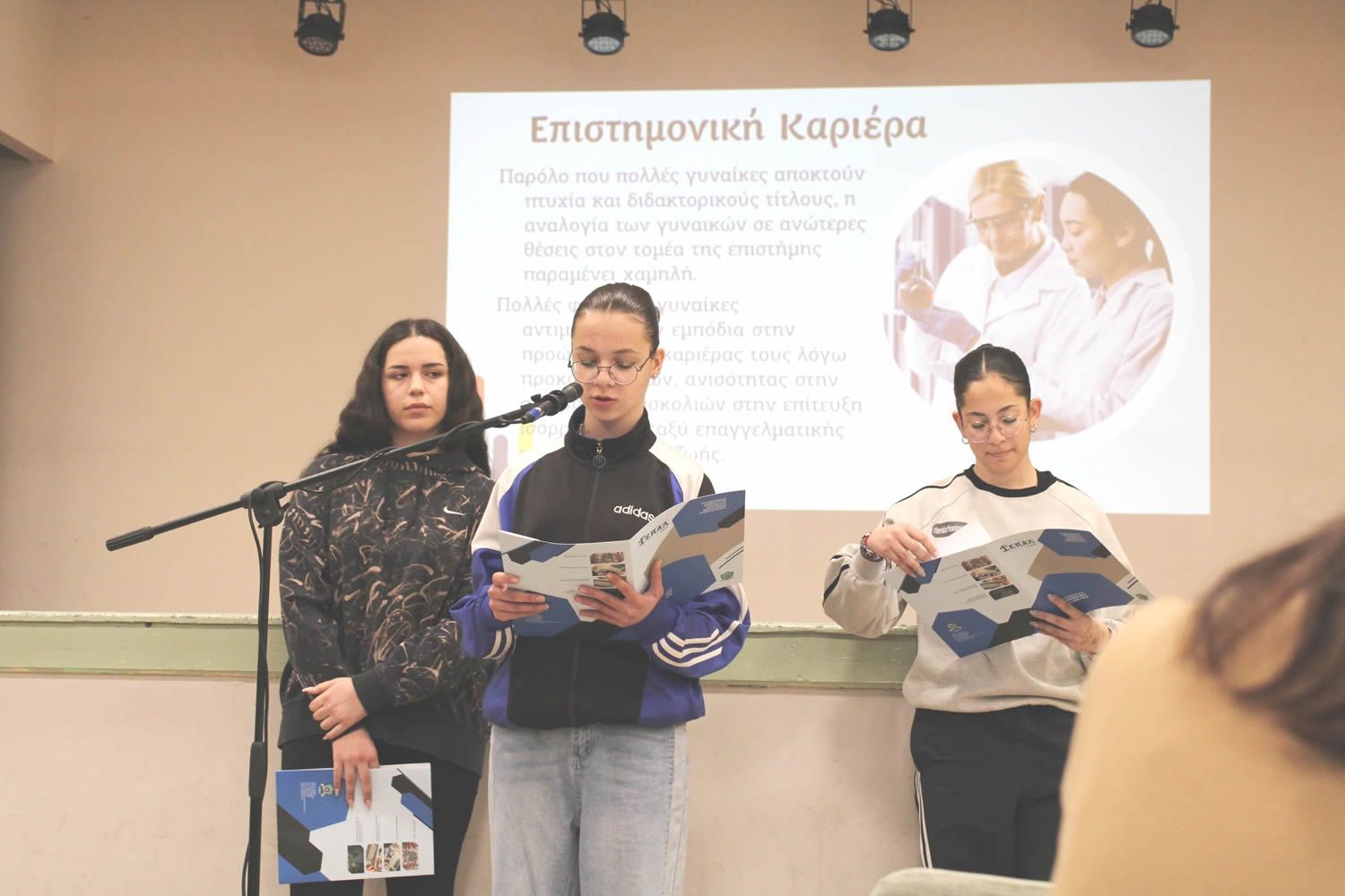 Η εκδήλωση ολοκληρώθηκε με την παρουσίαση: «Οι Γυναίκες στην επιστήμη» από τους μαθητές και μαθήτριες του σχολείου και Πρέσβεις του Ευρωπαϊκού Κοινοβουλίου.