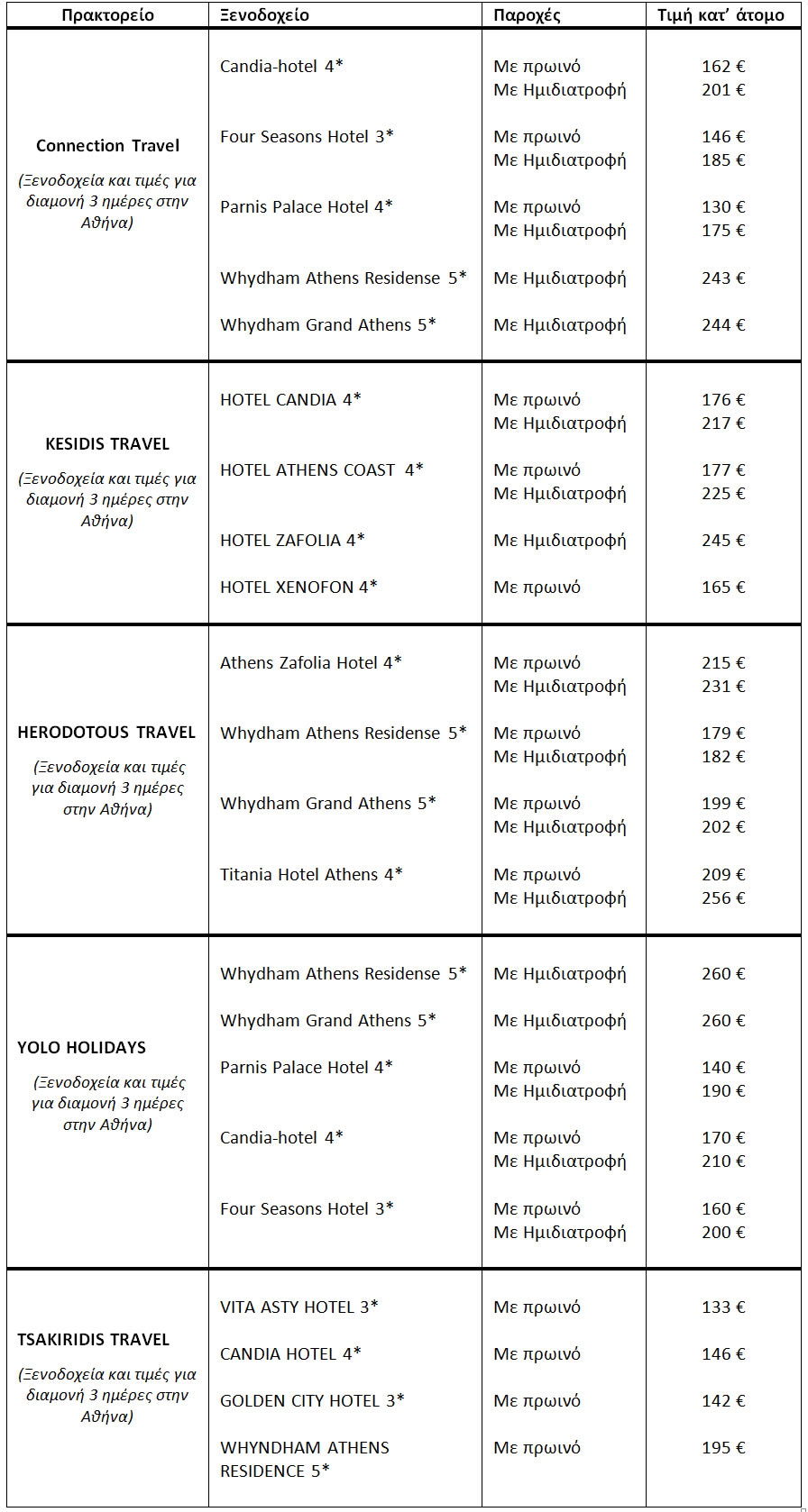 Επιλογή πρακτορείου για την πραγματοποίηση της εκπαιδευτικής επίσκεψης-μετακίνησης στην Αθήνα