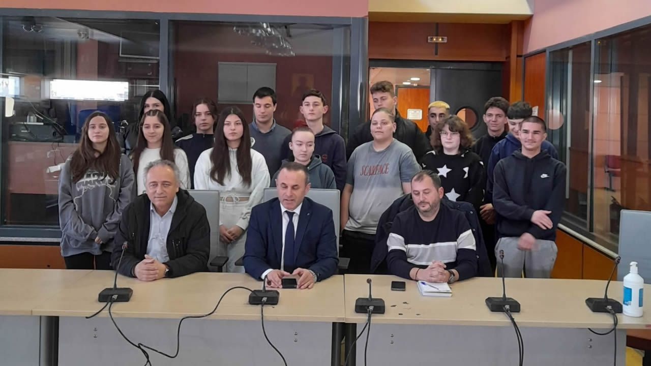 Αντιπροσωπεία μαθητών και καθηγητών του 1ου ΕΠΑΛ Δράμας στο πλαίσιο προώθησης της Εικονικής Επιχείρησης “Smart Electronic Bin” και της αναζήτησης υποστηρικτών και διάχυσης του έργου της με κύριο προϊόν τον Sebastian, φιλοξενήθηκαν στην αίθουσα συνεδριάσεων του Δημοτικού Συμβουλίου Δράμας και ενημέρωσαν το Δήμαρχο Δράμας κ. Γιώργο Παπαδόπουλο.