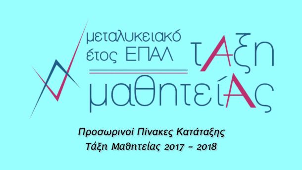 27 Σεπτεμβρίου 2018 ΠΡΟΣΚΛΗΣΗ ΥΠΟΒΟΛΗΣ ΑΙΤΗΣΕΩΝ ΓΙΑ ΣΥΜΜΕΤΟΧΗ ΣΤΟ ΜΕΤΑΛΥΚΕΙΟ ΕΤΟΣ-ΤΑΞΗ ΜΑΘΗΤΕΙΑΣ ΠΕΡΙΟΔΟΥ 2018-19.