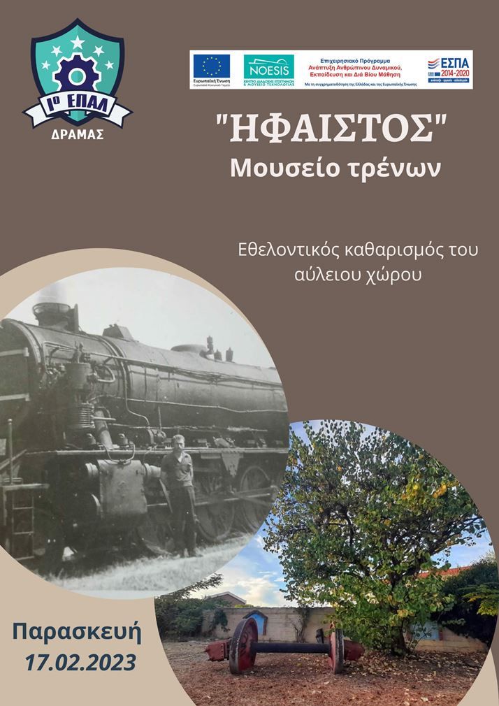 Ευχαριστούμε ιδιαίτερα τον Πρόεδρο, κ. Μακρόπουλο Παναγιώτη, τα μέλη του Δ.Σ. και τους εθελοντές του Μουσείο Τραίνων "ΗΦΑΙΣΤΟΣ" για την από κοινού συνδιοργάνωση της δράσης και τη διάθεση βιβλίων για την ιστορία των τραίνων στους μαθητές και εκπαιδευτικούς στου σχολείου μας.
