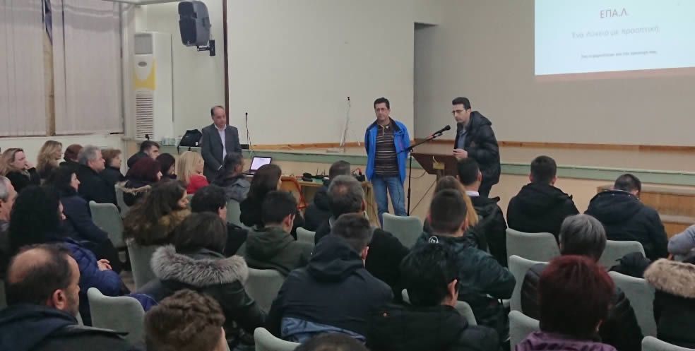 Την Τετάρτη 27 Φεβρουαρίου 2019, στο μεγάλο αμφιθέατρο του σχολείου μας, πραγματοποιήθηκε –με μεγάλη επιτυχία- ενημερωτική συνάντηση των γονέων και μαθητών του σχολείου με θέμα «Επαγγελματικοί Ορίζοντες Αποφοίτων 1ου ΕΠΑ.Λ. Δράμας» ώστε να αναδειχθούν οι δυνατότητες και προοπτικές των μαθητών του σχολείου μετά την αποφοίτησή τους.