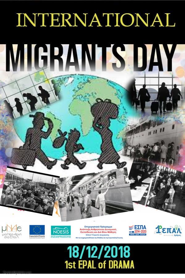 Οι μαθητές του σχολείου μας στο πλαίσιο αυτής της ημέρας επεξεργάστηκαν αφίσες σε ηλεκτρονικούς υπολογιστές του σχολείου με τη βοήθεια σχεδιαστικού προγράμματος, έμαθαν για τους μετανάστες και παράλληλα έκαναν εξάσκηση στα αγγλικά τους.