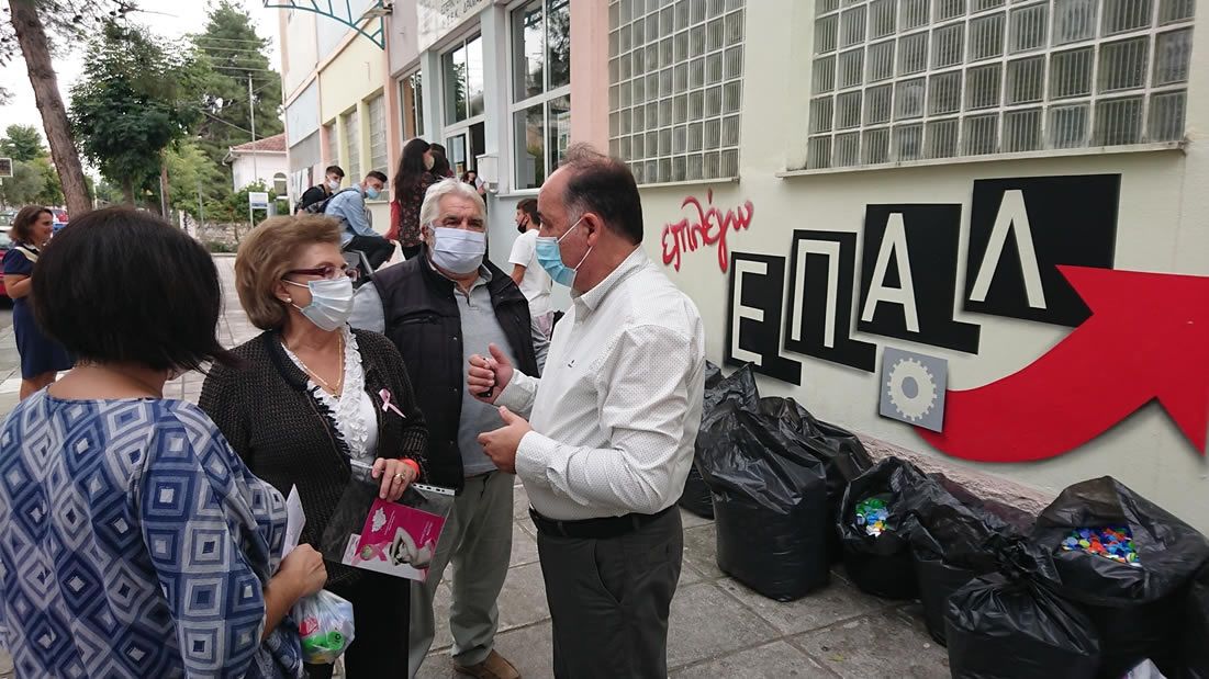 Φωτογραφίες από την προσφορά-δωρεά των πλαστικών καπακιών που συγκεντρώθηκαν στην πρόεδρο του Συλλόγου Καρκινοπαθών Δράμας προκειμένου να αγοραστεί ένα αναπηρικό αμαξίδιο.