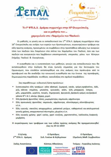 Οι μαθητές του 1ου ΕΠΑ.Λ. χαμογελούν στο "Χαμόγελο του Παιδιού"