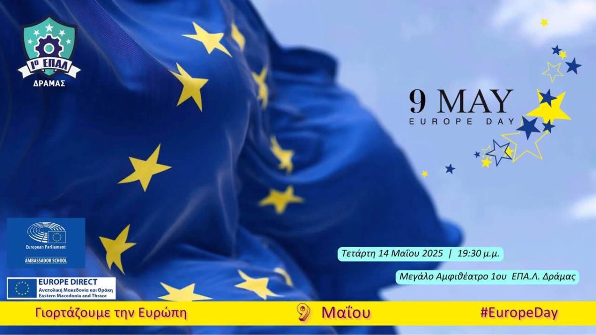 Με αφορμή την Ημέρα της Ευρώπης , το 1ο ΕΠΑΛ Δράμας διοργάνωσε εκδήλωση στις 14 Μαΐου στο πλαίσιο της συμμετοχής του στο ευρωπαϊκό εκπαιδευτικό πρόγραμμα «Πρέσβεις του Ευρωπαϊκού Κοινοβουλίου».