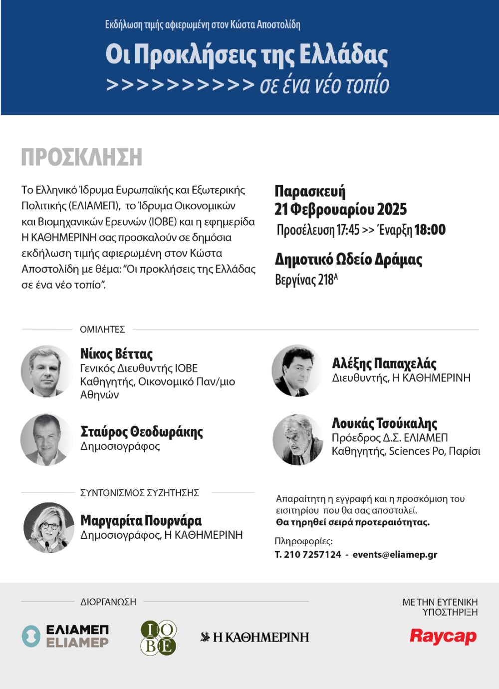 Οι Προκλήσεις της Ελλάδας σε Ένα Νέο Τοπίο: Εκδήλωση Τιμής Αφιερωνόμενη στον Κώστα Αποστολίδη