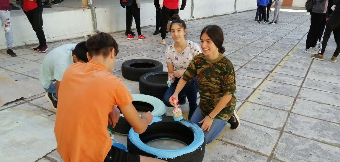 Φωτογραφίες από το μαθητικό διαγωνισμό που κολλήθηκαν ως αυτοκόλλητο στον πολυχώρο των μαθητών.